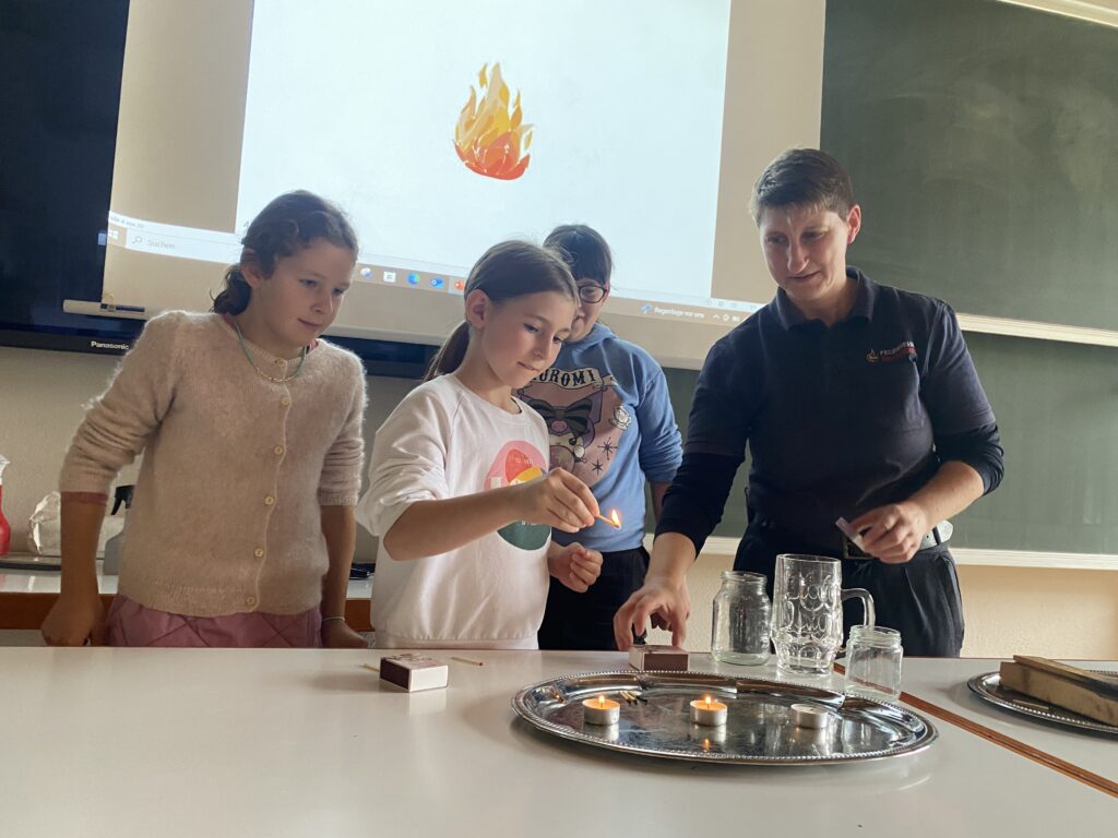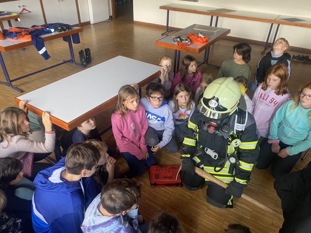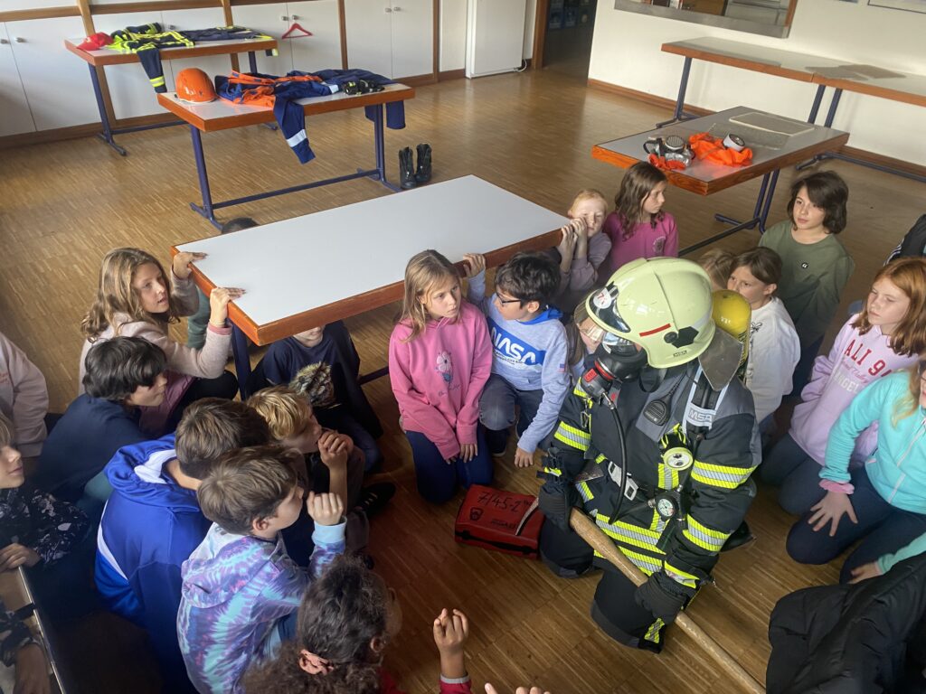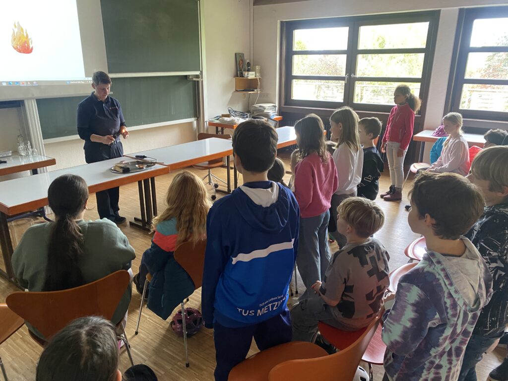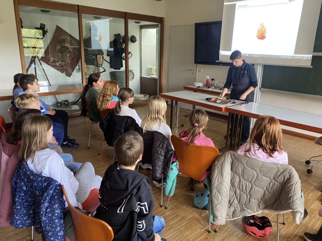 Im Rahmen des Sachunterrichts zum Thema „Feuer“ besuchte die Klasse 4 zusammen mit ihrer Lehrerin Frau Hoffmann die Feuerwehr in Oferdingen. Schon auf dem Weg waren wir ganz gespannt, was uns dort erwartet. Bei der Feuerwehr wurden wir freundlich von Freu Pregizer begrüßt und sie begleitete uns durch den Nachmittag. HERZLICHEN DANK an Frau Pregizer für den lehrreich und interessanten Nachmittag bei der Feuerwehr in Oferdingen.