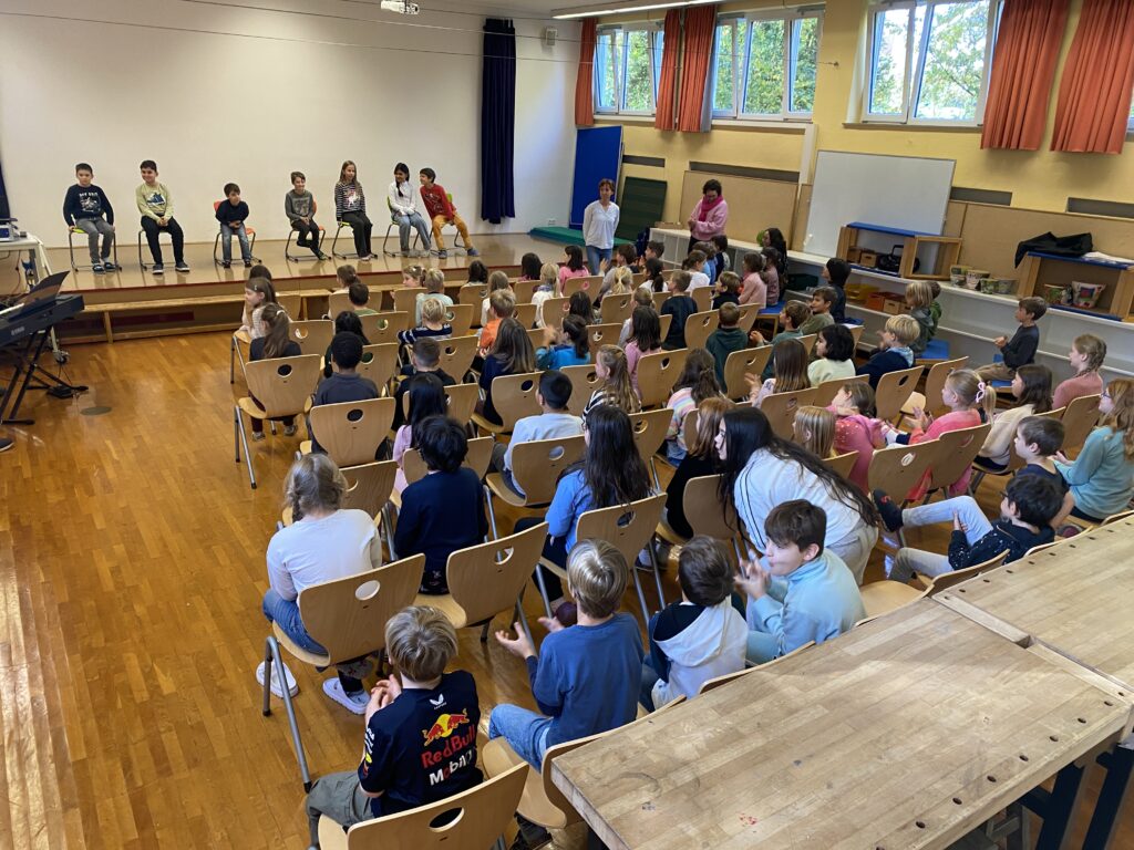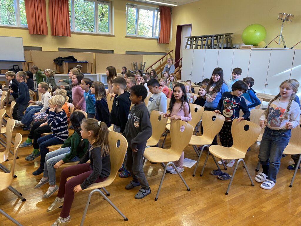 Am letzten Freitag vor den Herbstferien fand in unserer Schule der Herbst-Morgenkreis statt. Gemeinsam begrüßten wir den Herbst mit mit fröhlichen Herbstliedern und alle Klassen führten kleine Beiträge vor.