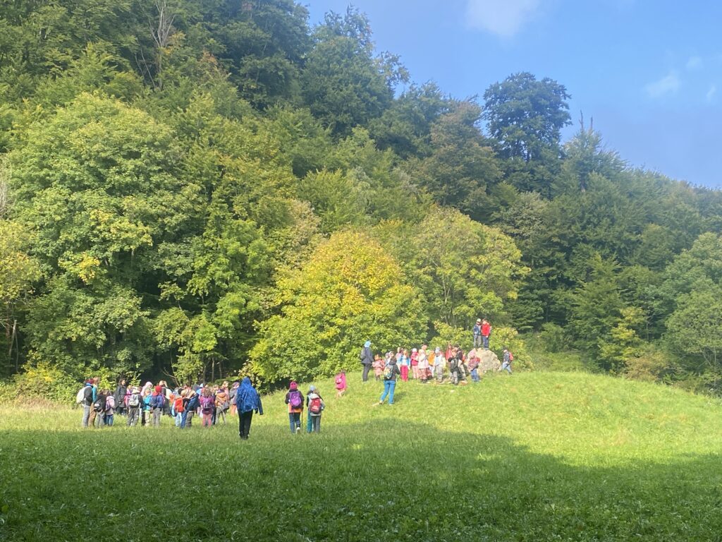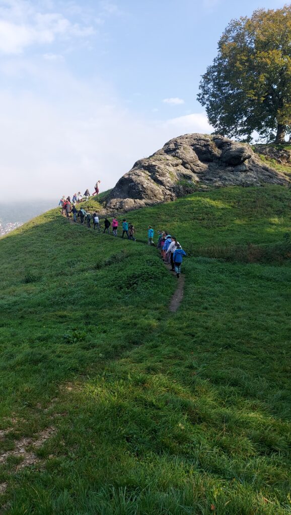 Am Mittwoch, den 01. Oktober 2025 nutzten wir das schöne Herbstwetter und machten uns auf den Weg zu unserem alljährlichen Wandertag. Der Weg führte uns diesmal nach Dettingen/ Erms ans Calverbühl mit anschließendem Grillen am Erdschlipf. Wir verbrachten den ganzen Vormittag mit viel Entdecken, Spielen, Grillen und Toben an der frischen Luft. Es war ein rundum gelungener Tag, der uns wieder einmal gezeigt hat, wie wertvoll gemeinsame Erlebnisse in der Natur für unsere Schulgemeinschaft sind.