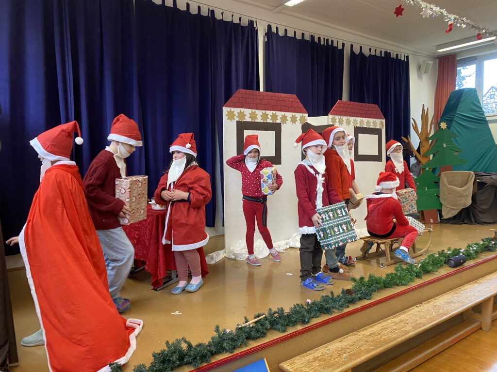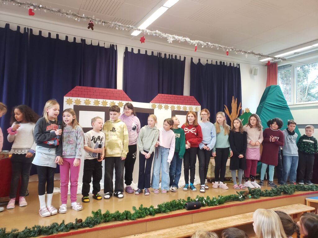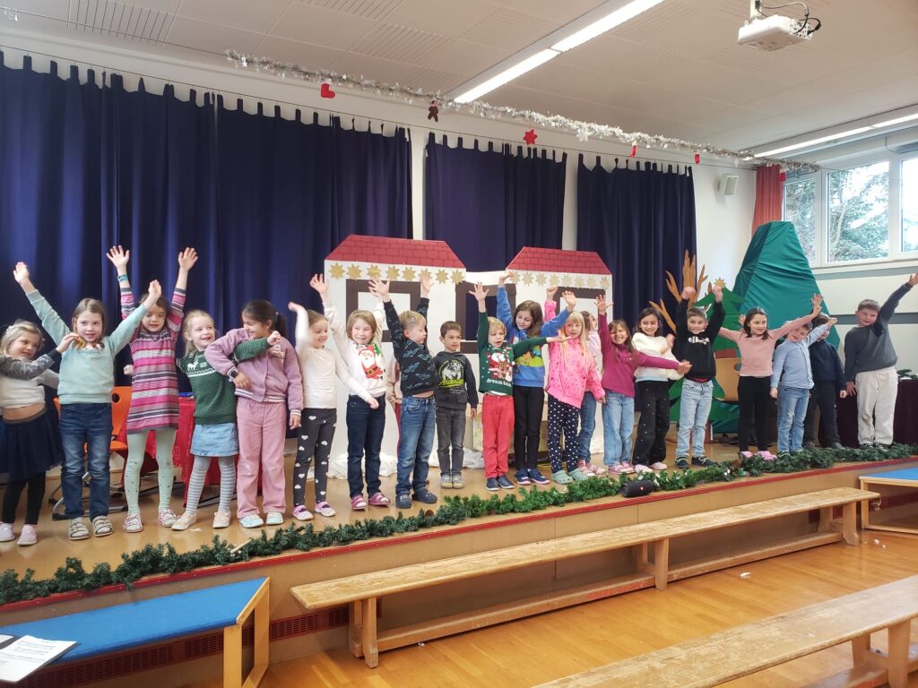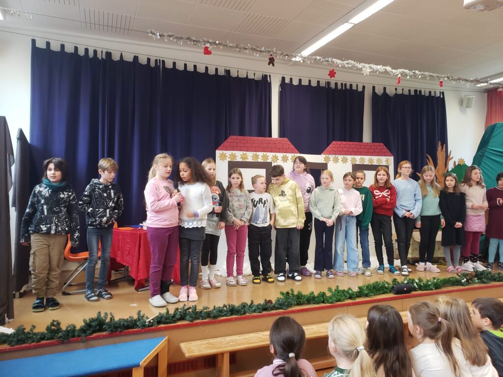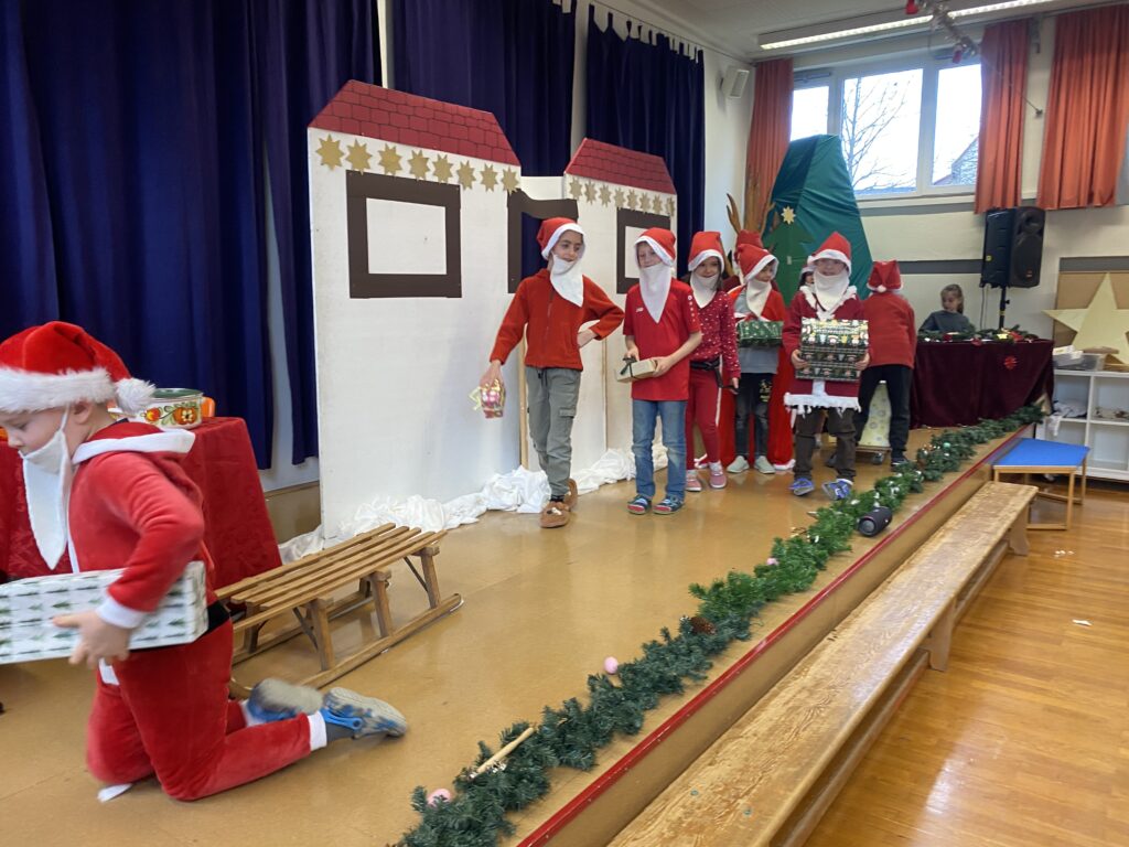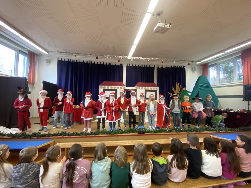Mit dem Weihnachtsmorgenkreis wächst die Vorfreude auf Weihnachten bei allen Schülerinnen und Schülern sowie Lehrerinnen und Lehrern ganz besonders. Allein schon die festlich geschmückte Aula sorgt für eine weihnachtliche Atmosphäre im ganzen Schulhaus. Alle Klassen unserer Schule beteiligten sich mit eigenen Beiträgen und trugen zur weihnachtlichen und abwechslungsreichen Gestaltung bei. Mit Liedern, Gedichten, einem Rap und kleinen Spielszenen wurde die Adventszeit für alle Kinder spürbar. Der gemeinsame Morgenkreis bot den Kindern die Gelegenheit, sich gegenseitig zuzuhören, voneinander zu lernen und die Vorfreude auf Weihnachten zu teilen. So wurde der Morgenkreis zu einem schönen Gemeinschaftserlebnis für unsere ganze Schulgemeinschaft.